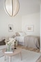 Ljus och luftigt vardagsrum som rymmer soffa och soffbord med en anslutande sovalkov som rymmer en 140 cm säng. Köket är funktionellt med skåpsluckor i björk, mörk bänkskiva och vitt kakel. Gott om förvaring och utrustat med spishäll, ugn, diskmaskin, dubbelho. Intill fönsterpartierna rymmer det plats för en matgrupp eller skrivbordshörna om så önskas.