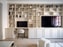 Vackert vardagsrum med stuckatur, takrosett och fina listverk på väggarna. Härligt ljusinsläpp och rymd genom stort bågformat fönster med spröjs och generös takhöjd. Längs hela ena långsidan löper en smakfull platsbyggd bokhylla i mjukt beige ton som rymmer både arbetsplats, tv, förvaring bakom fina ramluckor, samt en smart dold frys bakom integrerad lucka. Rummet rymmer också en större soffgrupp och matsalsbord för 6 personer. Ljusa väggar och fiskbensparkett på golvet.