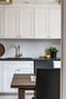 Ljust och stilrent kök som renoverats under 2022. Köket erbjuder plats för matbord invid fönster. Köket är utrustat med induktionshäll, köksfläkt, inbyggnadsugn, inbyggnadsmicro, kombinerad kyl/frys och diskmaskin. Målade väggar och klinkergolv.