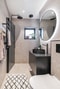 BADRUM - Superfint badrum med kakel och klinker med elgolvvärme. Infällda spotlight i tak, dusch, handdukstork (el), handfat med kommod med bra förvaring, badrumsskåp och toalett.