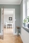 Entréhall med vinyl klickgolv och vitmålade väggar med ljusgrå panel. Förvaring i form av vacker hatthylla i original och garderob. I anslutning till entrén finns en gästtoalett med wc från 2013 och handfat från 2015. Här är det klinker på golvet och kaklade väggar.