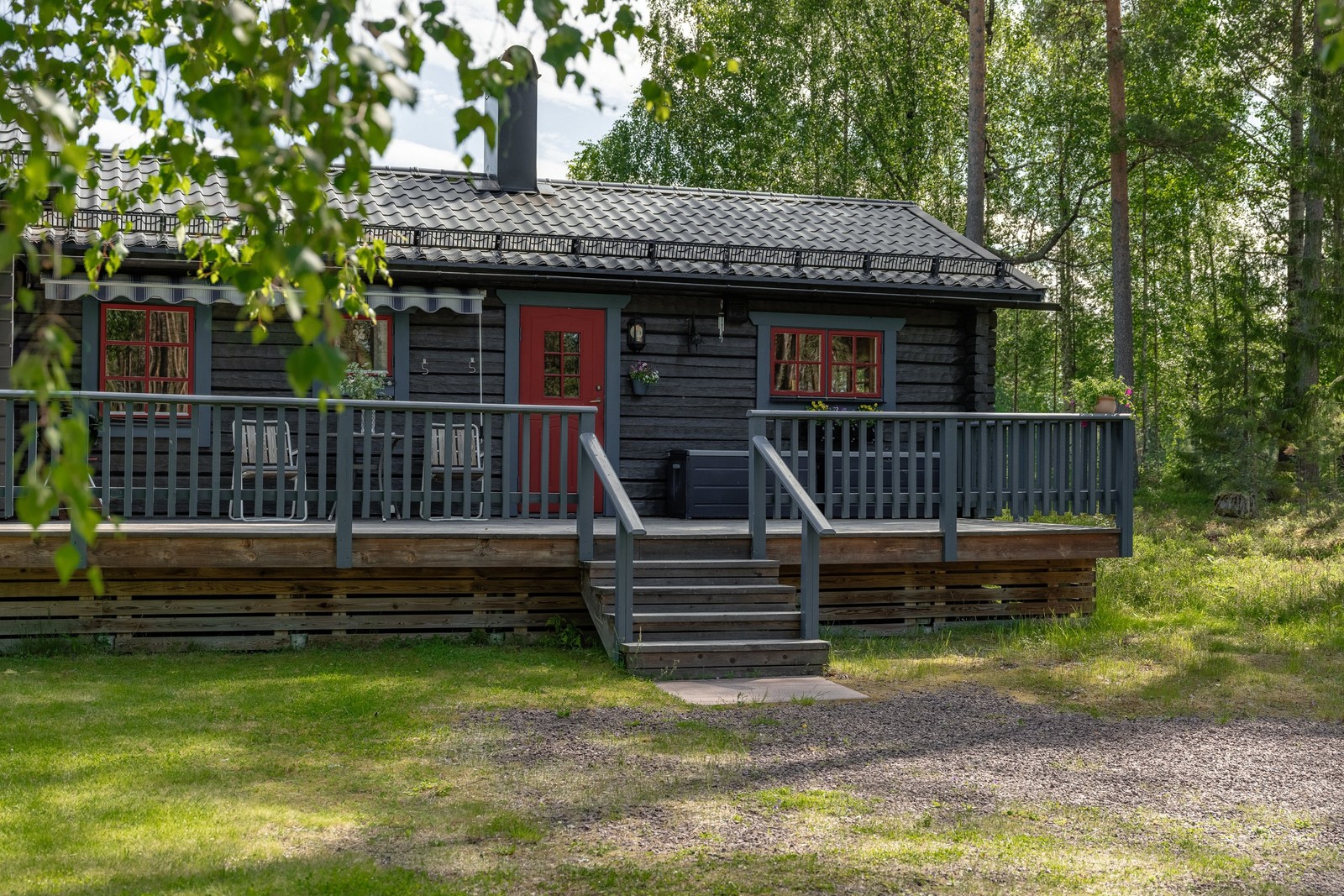 På entrésidan ligger dags- & kvällsolen och slogboden är perfekt placerad för solnedgången i väst.