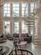 Stort och luftigt sovrum med härlig takhöjd, synliga takbjälkar och utgång till balkong i bästa sydvästläge.