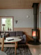 Storstugan är öppen och rymlig med plats för både soffgrupp och matbord för 10 personer. Här finns en kamin från Contura. Väggarna har bröstpanel i kombination med målad väv, taket är klätt i träpanel och laminatgolv. Från storstugan finns utgång till altan.
