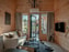 Öppen storstuga med kök, matbord och TV-del i en gemensam yta under delvis ryggåstak och med ljusinsläpp från fönsterpartier mot uteplats. Vinylgolv, liggande träpanel på vägg och vitlaserad träpanel i tak. Golvvärme + luft-luftpump med både värme och kyla.