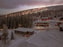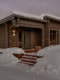 Utgång till uteplats i sydväst-läge längs husets långsida. Utsikt mot Lindvallens pister.
