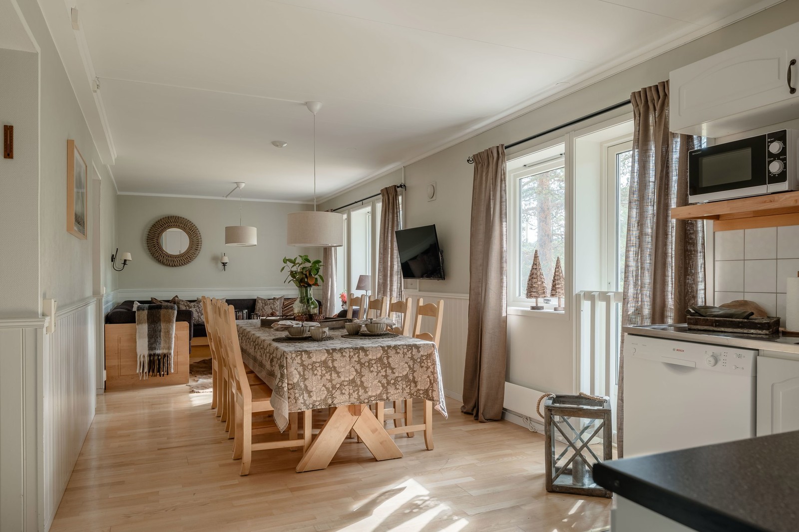 Bostaden erbjuder en välplanerad planlösning om sjuttiotvå kvadratmeter med tre sovrum och gott om bäddplatser. Två av sovrummen har dubbelsängar medan det tredje rymmer både familjevåningssäng och våningssäng vilket är perfekt för den stora familjen eller när vännerna följer med. Storstugan har både köksdel och en trivsam umgängesdel där soffhörnan blir samlingspunkten efter dagens aktiviteter. Två badrum med dusch underlättar vardagen, och i det ena finns även bastu för skön avkoppling.