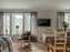 Bröstpanel, målade väggar i ljus ton, målade skivor i tak. Köksdel med vita luckor och plastmatta, diskmaskin Bosch, spis med ugn Electrolux, kyl/frys Electrolux. Matplats och umgängesdel med parkettgolv. Plats för hörnsoffa och matbord för ca 10 personer.