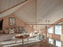 Ljus och luftig storstuga med öppet ryggåstak och stora fönster som ger ett fantastiskt ljusinsläpp och utsikt i ostört läge mot myren. Öppen planlösning mellan allrum, matplats och kök samt utgång till uteplats med sittgrupp, spabad och bastu. Vinylklick på golv, träpanel på väggar och i tak. Ryggåstak med synliga bjälkar och öppet upp till nock samt upp till övervåningen.