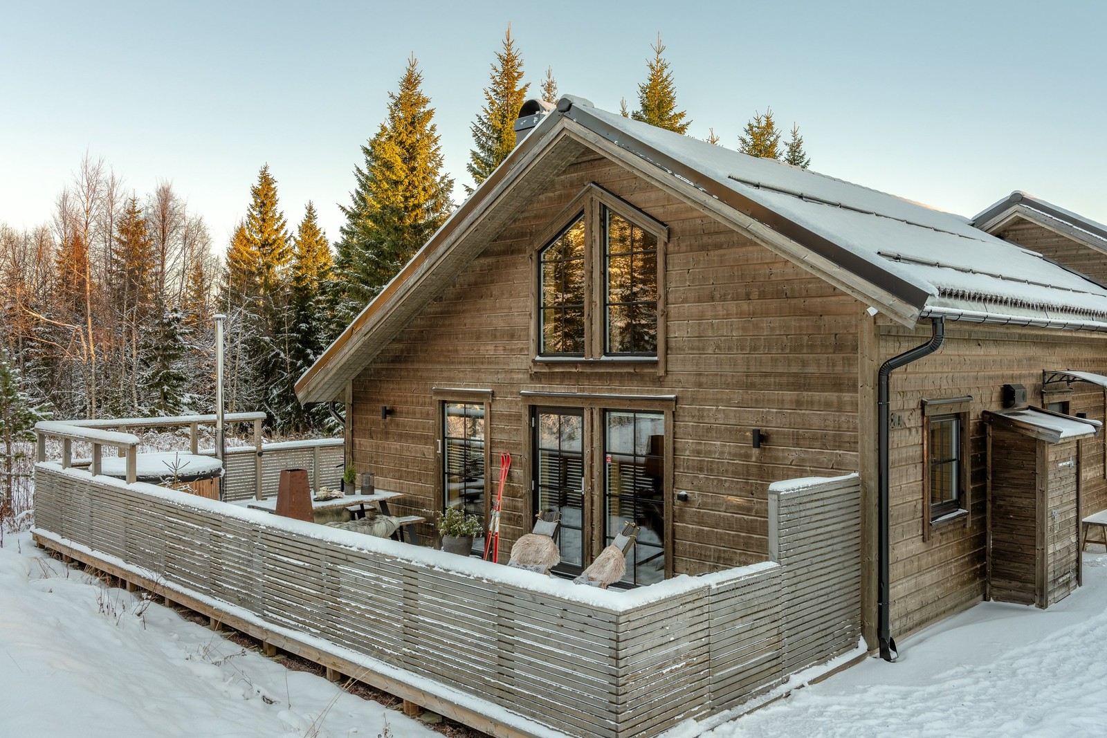 Bostadsrättshus med lodgekänsla vid Sälfjällstorget med bastu, braskamin och spabad