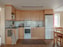 Köksdelen är utrustad med kombinerad kyl/frys från Bosch, spis från Siemens, fläkt från Cylinda, mindre diskmaskin från Bosch, mikro samt bänkskiva i laminat.