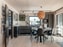 Köksdel med plats för matbord. Kök från Lube med bänkskiva i kompositsten. Integrerad kyl/frys, ugn, mikrovågsugn, induktionshäll samt integrerad diskmaskin, samtliga från Siemens (2021).
