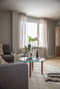 Ljust och generöst vardagsrum med fönster i två väderstreck som skapar ett vackert ljusflöde under dagen. Rummet erbjuder goda möbleringsmöjligheter för både soffgrupp och mediamöbel. Härifrån nås den inglasade balkongen i soligt läge, som fungerar som ett uppskattat extrarum stora delar av året.