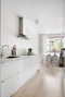 Köket är snyggt renoverat i ljusa färger med goda arbetsytor och förvaring. Här finns plats för en trivsam matplats intill de stora fönstren som släpper in härligt ljus.