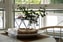Stor inglasad balkong med en svart matta på golvet för en ombonad känsla, ett rum man lätt trivs och umgås i som samtidigt förlänger vardagsrummet.