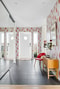 Det lekfulla tapetmönstret ger ett stilsäkert första intryck och skapar en ombonad karaktär som direkt signalerar trivsel. Här kombineras praktisk funktion med en estetisk helhet som känns både modern och personlig. Från hallen har du dessutom en fin siktlinje vidare in i bostaden, där ljuset fortsätter flöda in från flera håll.