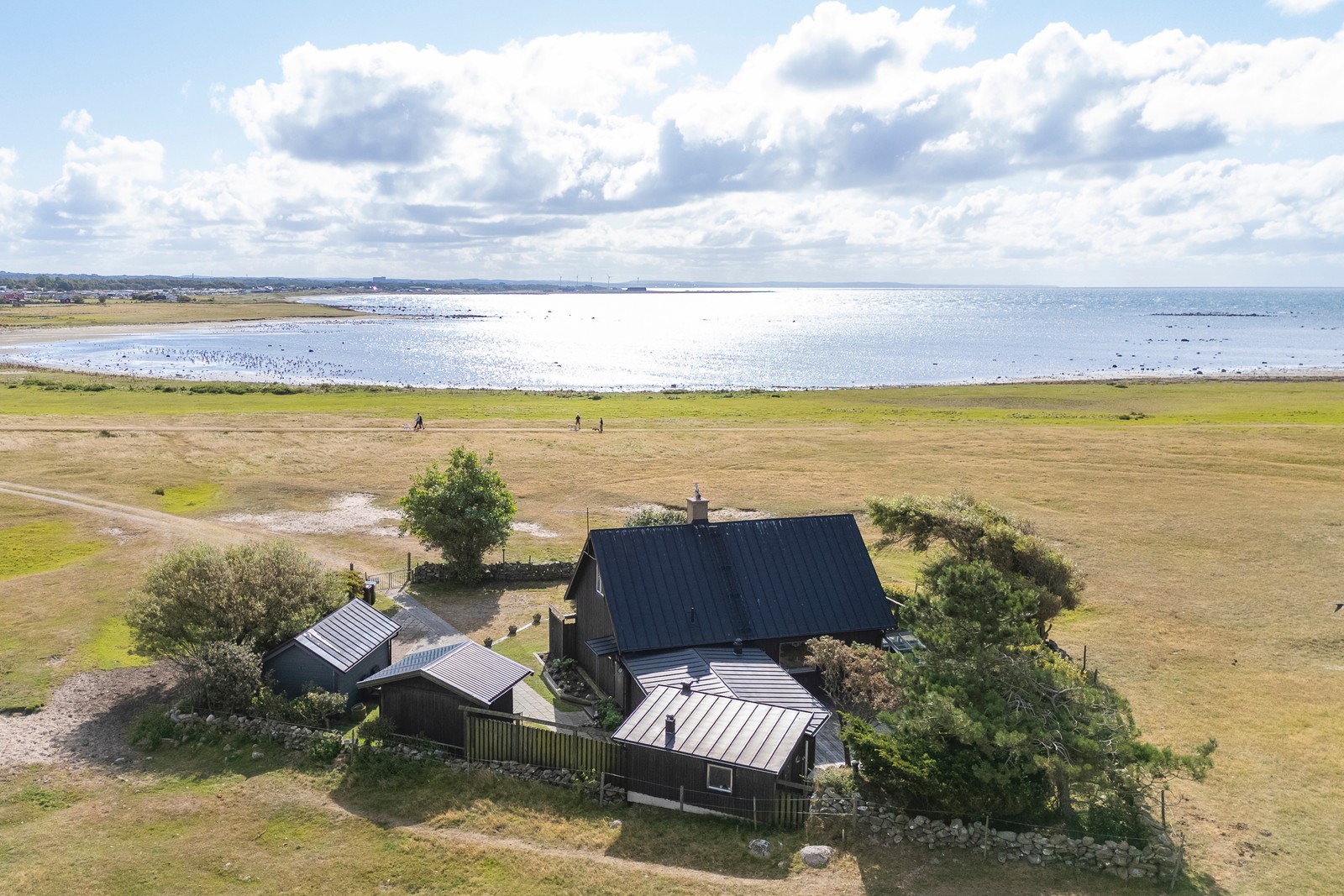 Huset och trädgården ligger i ensamt majestät, nästan längs ute på udden i det stora naturreservatet. Inget mer än lågt bevuxna strandängar finns mellan dig och vågorna som stilla slår mot sandstranden, cirka 100 meter bort. Omgiven av hav på tre sidor är panoramautsikten fri och ohindrad.