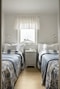 Till höger om köket ligger två mysiga sovrum med laminatgolv och vit strukturtapet. Det ena rummet har två sängar, det andra en praktisk våningssäng – idealiskt för familjen eller gästerna.