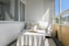 Det rymliga vardagsrummet har ett generöst ljusinsläpp och gott om plats för både soffgrupp och matsalsmöbel. Härifrån når du den inglasade balkongen i söderläge – en solig och skyddad plats som förlänger säsongen och skapar en härlig oas för avkoppling.