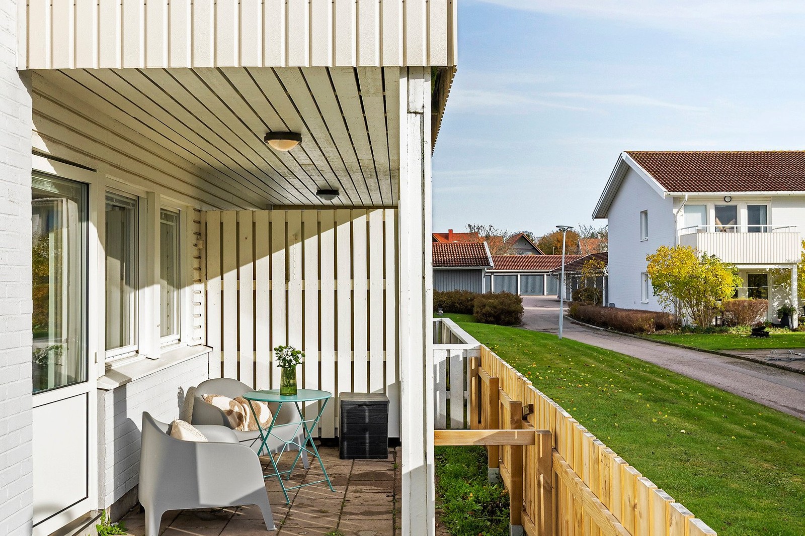 Lägenheten disponerar en fin uteplats, som ligger i direkt anslutning till vardagsrummet och ramas in av staket som skapar en trivsam miljö. Här finns plats för utemöbler, odling eller en mindre loungedel – en perfekt plats för morgonkaffet, grillkvällar eller lugna stunder i solen.
