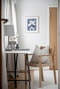 Köket som ligger till höger om matplatsen är funktionellt, stilrent och hemtrevligt.