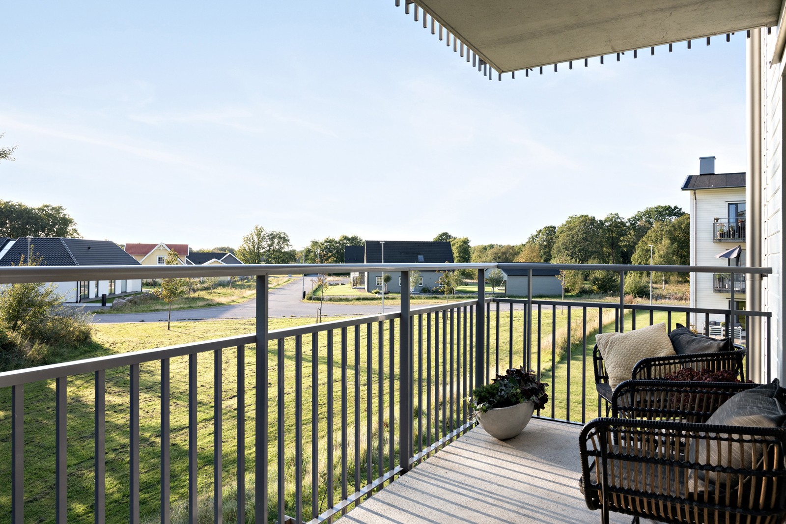 Modern och ljus fyra med öppen planlösning, stor balkong och naturskön utsikt i soligt läge