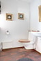 Entréhallen är rymlig och öppen med Höganäs klinkers som pryder golvet och vita väggar. Varje klinker är som en del av en välfungerande symfoni, som ger en känsla av hållbarhet och tidlös skönhet. Till vänster i hallen finns ett kapprum som är en funktionell detalj som ger ordning och reda i ditt hem. Här kan du enkelt organisera ytterkläder & skor vilket underlättar att du håller ditt hem snyggt och välkomnande. Från kapprummet når man gästtoaletten, även här pryds golvet av Höganäs klinkers och väggarna är vita.