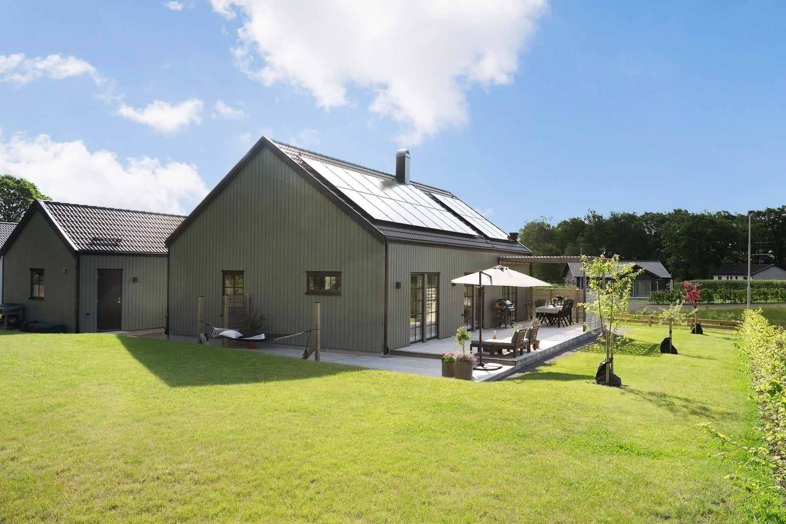 Stilrent hus nära havet med solceller, garage & möjlighet till övervåning – låga boendekostnader!