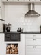 Köket renoverades 2016. Fabrikat: IKEA med målade luckor/kompletteringar av Fridhemsbergs snickeri. Golv: Vattenburen golvvärme i klinker. Borås-tapet på väggar ("Thistle"). En stenskiva vid spisen, en marmorskiva, stänkskydd i vitt kakel. Plats för matbord för 6-8 pers.