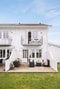 Stilrent kök med vita luckor, arbetsbänk i trä och kaklat stänkskydd. Här finns gott om förvaring och arbetsytor samt full maskinell utrustning. Köket ligger i öppen planlösning mot vardagsrummet vilket skapar en social och inbjudande miljö.