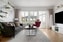 Ljust och luftigt vardagsrum med fint ljusinsläpp från stora fönsterpartier. Här finns gott om plats för både soffgrupp och matplats. Från rummet nås bostadens altan och trädgård – en naturlig förlängning av sällskapsytorna.