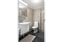 Köket och matplatsen är från 2021 med grått klinker på golvet och golvvärme samt vita väggar. Från matplatsen som rymmer 4-6 personer har man utsikt över innergården och trädgården. Vardagsrummet ligger till vänster om köket och har ett grått laminat på golvet samt vita väggar Sovrummet har laminatgolv och vita väggar. På detta plan finns också en stilren helkaklad toalett med dusch. Golvet har mörkgrått klinkers och väggarna vitt kakel.