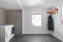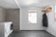 Ni kommer in i en större entréhall som har grått klinkers på golvet och vita väggar. Här finns även husets tvättmaskin och torktumlare.