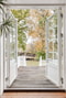 Trägolv och målade väggar, utgång via dubbeldörrar