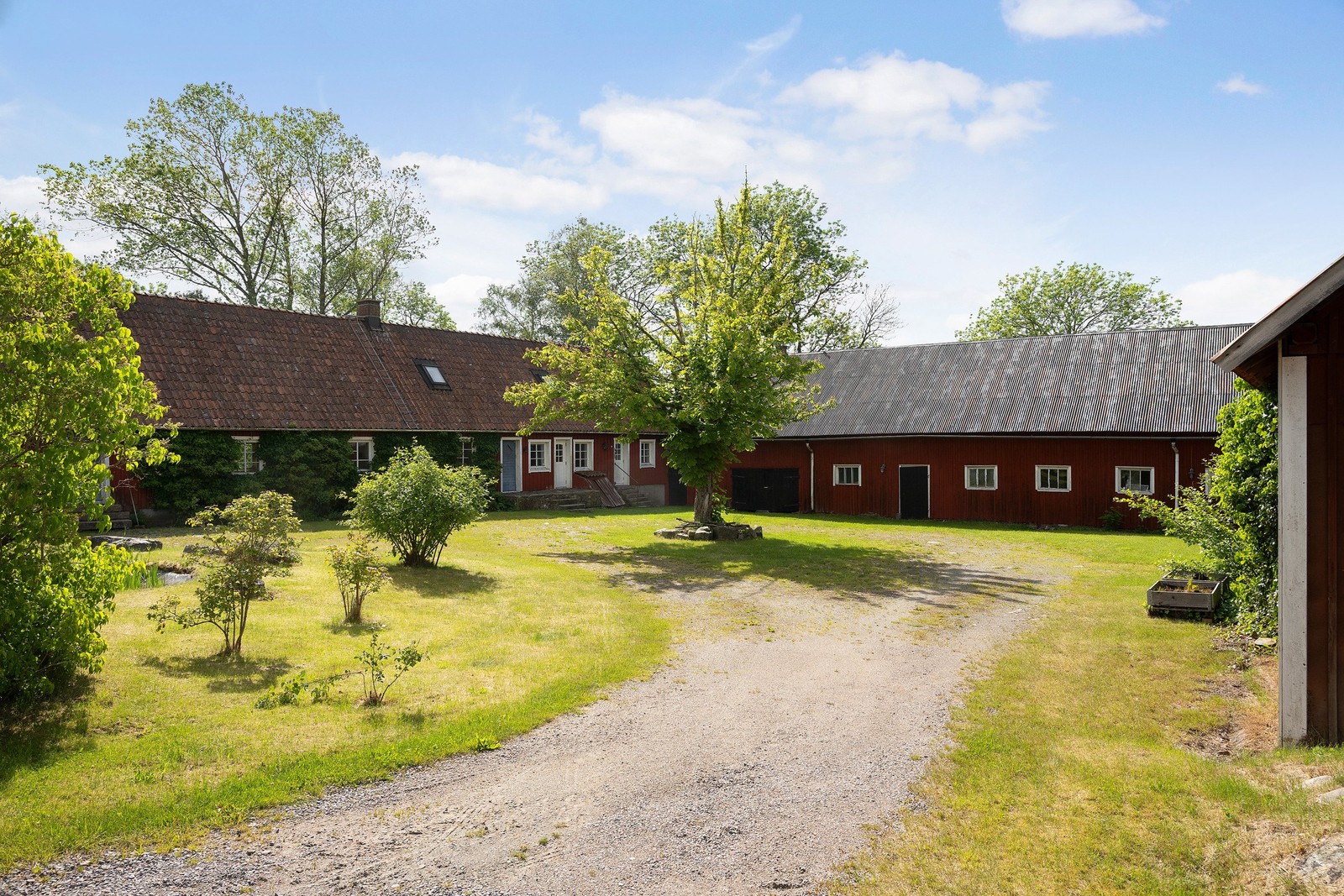 Här möts du av en röd träfasad, klassiska takpannor och en vacker innergård omgiven av två byggnadskroppar: ett boningshus med tre separata lägenheter samt en rejäl ladugård/stallbyggnad – allt med rötter i lantbrukets historia. Läget är lantligt men inte avsides – på bara några minuter når du E6/E20 och centrala Falkenberg.