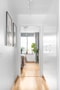 Redan i hallen möts du av en ljus och välkomnande atmosfär med praktisk förvaring för skor och ytterkläder. Genomgående i hela bostaden ligger ett vackert parkettgolv som förstärker den eleganta känslan och skapar en enhetlig helhet.