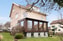 Isolerat uterum med stora glaspartier, direkt utgång från bostadens matsal. Från uterummet finns en altandörr som leder vidare till trädgården där ytterligare en stenbelagd yta med tre väggar och tak finns.
