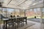Rymligt uterum med direktkontakt med sällskapsrum och kök. Har skjutbara partier från både lång -och kortsida. Trädäck i direkt anslutning mot trädgårdsidan. Finns elgolvvärme i uterum