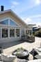 Uterummet blir en naturlig förlängning av bostaden med generösa glaspartier, högt snedtak och klinkergolv som ger både ljus och rymd. Härifrån nås det väl tilltagna altandäcket som bjuder in till sociala stunder, grillkvällar och avkoppling – en härlig utemiljö där inne och ute möts på bästa sätt.