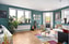 Rakt fram öppnar hallen upp sig mot det ljusa och luftiga vardagsrummet, som har ett generöst ljusinsläpp från stora fönsterpartier. Väggarna är målade i en behaglig grön kulör och på golvet ligger det ett fiskbensparkett. Utgång via dubbeldörrar till balkongen.