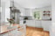 Köket är öppet och stilrent med en genomtänkt planlösning som gör matlagningen till ett nöje. En bardisk skapar en naturlig avgränsning mot matrummet och ger plats för avslappnade samtal. Köksinredningen går i tidlöst vitt med matchande bänkskivor och erbjuder gott om arbetsytor samt ett praktiskt gå-in-skafferi – en detalj som verkligen höjer vardagslyxen. Här finns plats för ett matbord där familj och vänner kan samlas. Utrustningen är komplett med spishäll, ugn, inbyggd mikro, fläkt, diskmaskin samt kyl och frys. Även här pryds golvet av parkett och väggarna är ljusa.