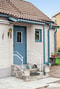 Husets "fin entré" ligger ut mot Föreningsvägen och här finns trappan upp till övre plan.