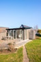 Sovrummet erbjuder en lugn och avkopplande miljö med laminatgolv och väggar målade i en ljus, behaglig kulör. Rummet rymmer både dubbelsäng och extra bädd och passar lika bra för familj som gäster. Ljuset faller fint in genom fönster och glasad dörr som skapar en trevlig koppling till utemiljön. Förvaring är smart löst i stugan genom yteffektiva lösningar som smälter väl in i helheten.