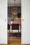 Från hallen öppnar två generösa sällskapsrum upp sig i fil, förbundna med eleganta skjutdörrar. Ljuset flödar in genom stora fönsterpartier och skapar en härlig kontakt med den grönskande trädgården. Här finns gott om plats för både soffgrupp och läshörna – och dessutom en utgång till den soliga terrassen.