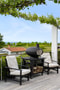 Ljust kök i öppen planlösning mot matplats och sällskapsrum som ligger i vinkel. En arbetsö på 1,80 x 1,20 meter delar på ett smart sätt av köket mot matplatsen och sällskapsytorna, samtidigt som den erbjuder generös förvaring samt en vinkyl för extra komfort. Från köket finns även en praktisk köksingång som leder direkt ut till den stora terrassen på ca 65 kvm – perfekt både för vardagens måltider och sommarens middagar, med gott om plats även för loungemöbler. En eldstad skapar en varm och ombonad känsla, och de stora fönsterpartierna ger ett fantastiskt ljusinsläpp. Pardörrar leder ut till terrassen.