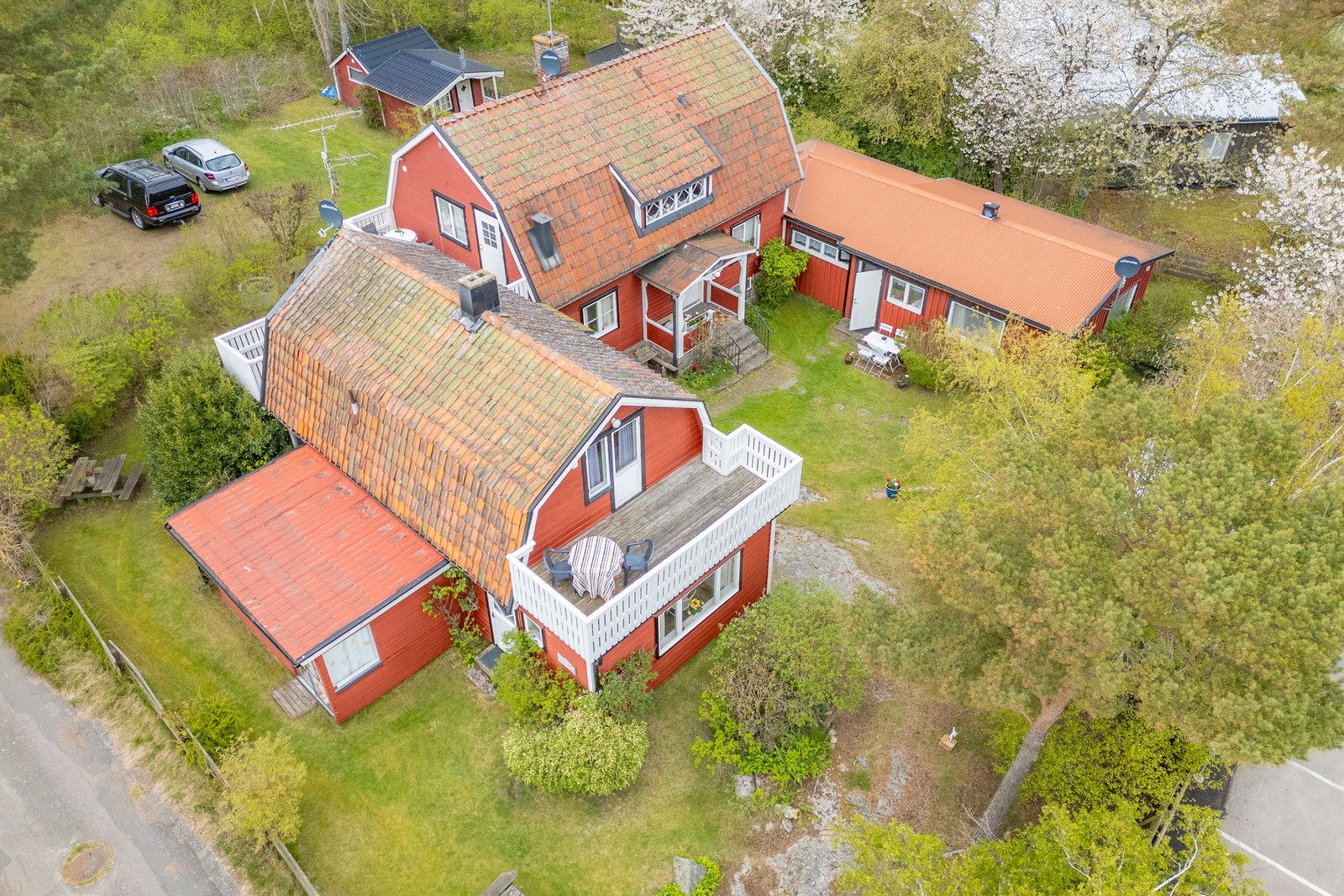 Fastigheten består av tre separata huskroppar med goda möjligheter till både boende och uthyrning.