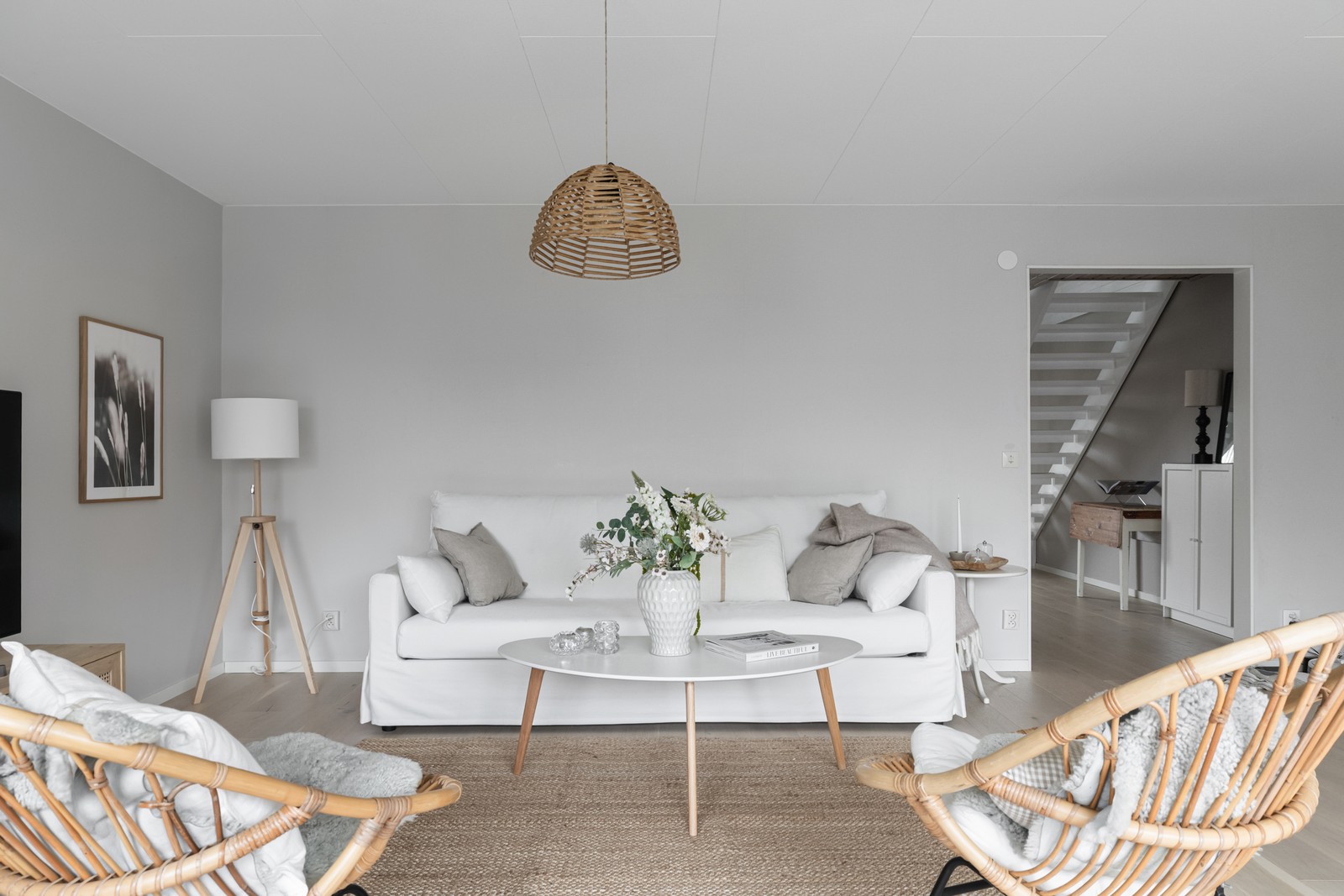 Bostadens nedre plan är renoverad 2019 och erbjuder en rymlig hall med klinker och golvvärme, ett smakfullt och modernt kök med anslutning till tvättstuga, samt en öppen och social planlösning som leder er vidare till badrum och sällskapsrum. Från hallen finns ett praktiskt vidbyggt förråd som ni når både inifrån hallen och utifrån entrén för extra utrymme och som kan nyttjas till kontor eller ytterligare förvaring.