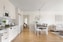 Entrén välkomnar er in till en rymlig hall med god plats för ytterkläder och mindre hallmöbel. Vidare möts ni av en öppen vy som tar er in till ett av sovrummen, kök och sällskapsrum, där den öppna planlösningen skapar en luftig känsla med social yta för såväl vardag och sociala tillställningar eller festligheter. Genom lägenheten löper ett enhetligt ekparkettgolv vilket bryter av med bostadens ljusa väggar på ett modernt sätt. Det stilrena köket från Marbodal går i vitt, med en ljusgrå bänkskiva och tidlöst vitt kakel. Köket är fullt utrustat med kyl och frys, spis/induktionshäll, köksfläkt, ugn, microvågsugn och diskmaskin samt bra arbetsytor och gott om förvaring. Intill köket finns plats för en större matgrupp och närheten till sällskapsrummet ger sin naturliga plats för soffgrupp vid sidan av de generösa fönsterna med utsikt mot innergården. Från sällskapsrummet har ni direkt access till balkongen med sydvästligt läge och många soltimmar under eftermiddag och kväll. Här kan ni njuta av både sol och skugga då de två terassmarkiserna kan användas var för sig, vilket ger er möjlighet att äta i skuggan men fortfarande ha loungegruppen och grillen i härlig eftermiddags- och kvällssol. Från balkongen når ni även ett av lägenhetens två förråd.