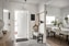Entrén välkomnar med en ljus hall och gott om plats för avhängning. Direkt till höger ligger bostadens första badrum, smakfullt helkaklat i klassiskt vitt med klinkergolv i grå ton. Här erbjuds dusch med vikbara glasväggar, vit kommod och wc.