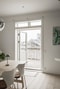 På det unika och generösa entréplanet samsas de sociala delarna där köket är ljust och öppet och matbordet får sin naturliga plats framför fönstren med vackert ljusinsläpp och utsikt över trädgården. Det smakfullt utformade köket smyckas av en bänkskiva i gedigen och vacker kalksten som följer över köksbänkar och på köksön som blir en samlingspunkt vid såväl matlagning som som när vänner samlas. Vidare finns en kontorshörna som erbjuder en avskild plats för arbete, studier eller planering i en lugn del av hemmet nära bostadens sociala ytor och ytterligare ett rum, likt en veranda, med väggar klädda i timmer och omfamnande fönster för vackert ljusinsläpp- härifrån når ni bostadens andra terrass där ni kan följa solens många timmar och söka skugga om så önskas .